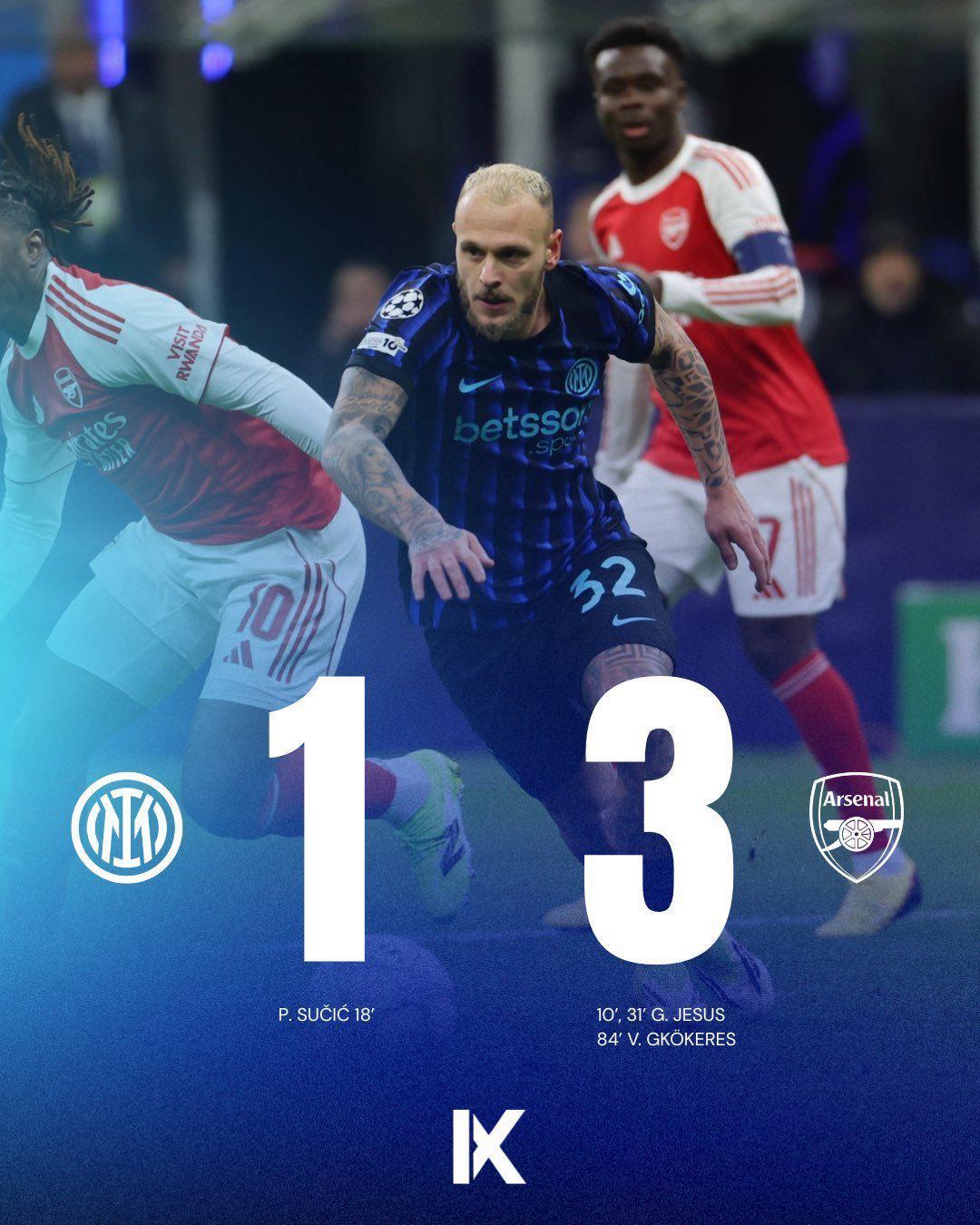 今天凌晨,国米在欧冠联赛阶段第7轮比赛中主场迎战阿森纳,虽然苏契奇在第18分钟打进一脚漂亮的世界波进球,但依然难挽球队整体败局,阿森纳热苏斯梅开二度、约克雷斯替补出战同样打进世界波,最终国米主场1:3输掉比赛。而这是继不敌马竞、利物浦后,国米队史首次遭遇单赛季欧冠三连败!对于这场比赛的失利,相信绝大部分内拉都有一定的心理预期,因为双方存在全方位的差距!最直观...